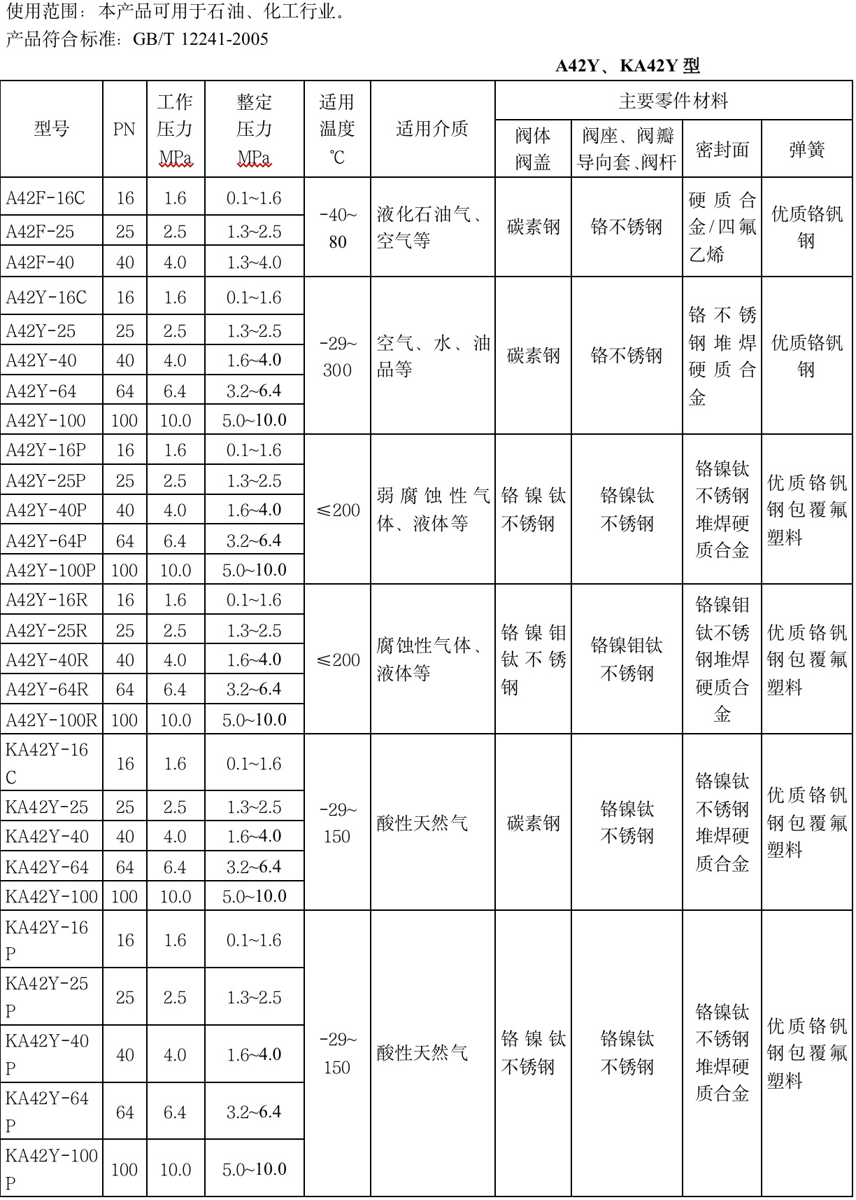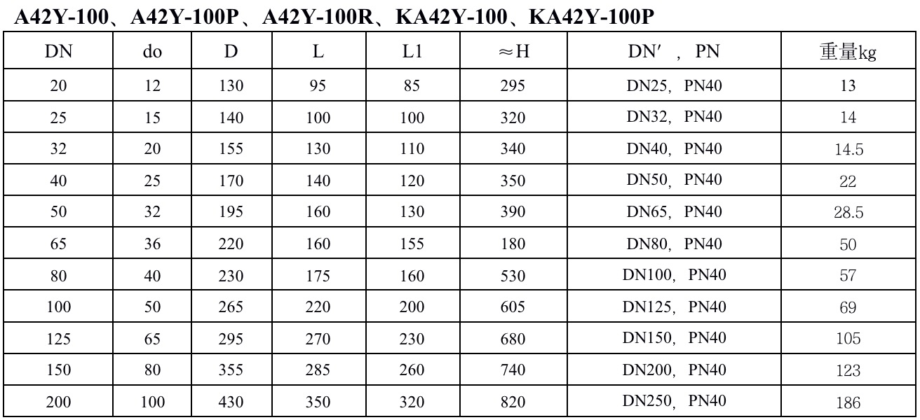 A42F 、A42Y、KA42Y(抗硫)型PN16~100